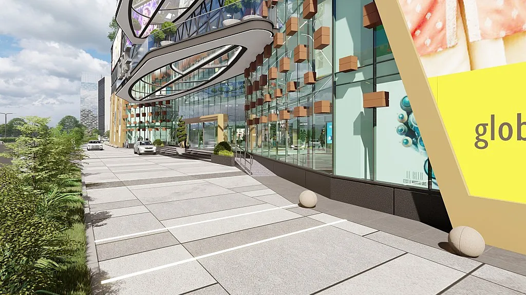 The development reinterprets a strong architectural and modern signature while incorporating contemporary markers to achieve smart buildingstatus. The cosmopolitan-Style development intends to respond to the citys rising demand for a work-Life balance while bringing multiple aspects of urban life into one consolidated building. The design is an amalgamation of retail stores on the lower floors of the precinct incorporating anchor stores, the recreational spaces then planned over the retail floors comprising of multiplex, food court, gamin zone & splendid terrace overlooking the exquisite landscaped area below.